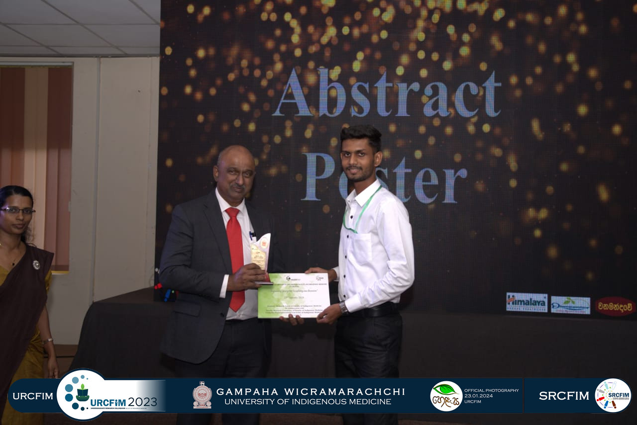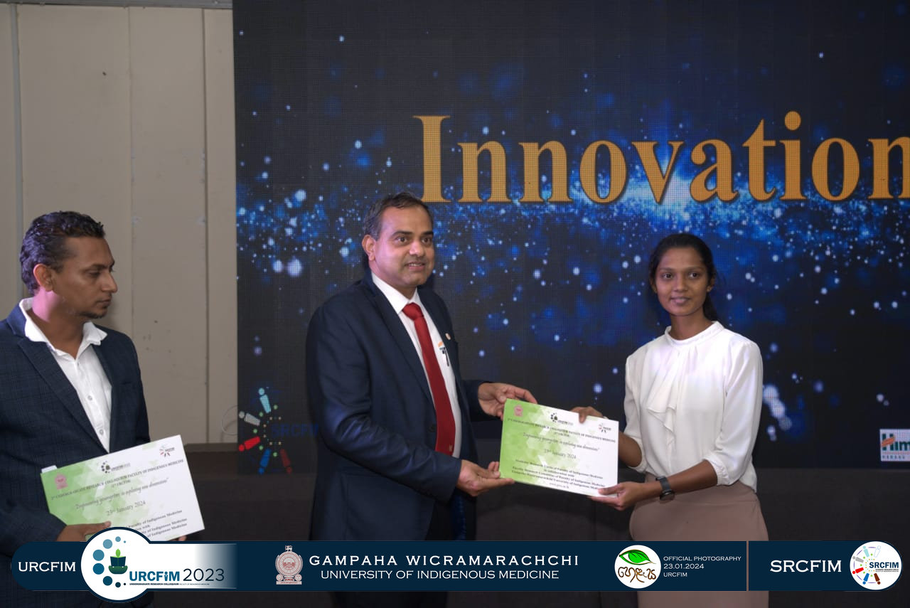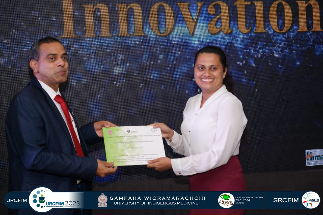 The Students’ Research Circle of the Faculty of Indigenous Medicine (SRCFIM) successfully organized URCFIM 2023, in collaboration with the Faculty Research Committee (FRCFIM) and under the supervision of the University Research Council. This was the second Undergraduate Research Colloquium of the university, held under the theme “Empowering Youths to Explore New Dimensions.”